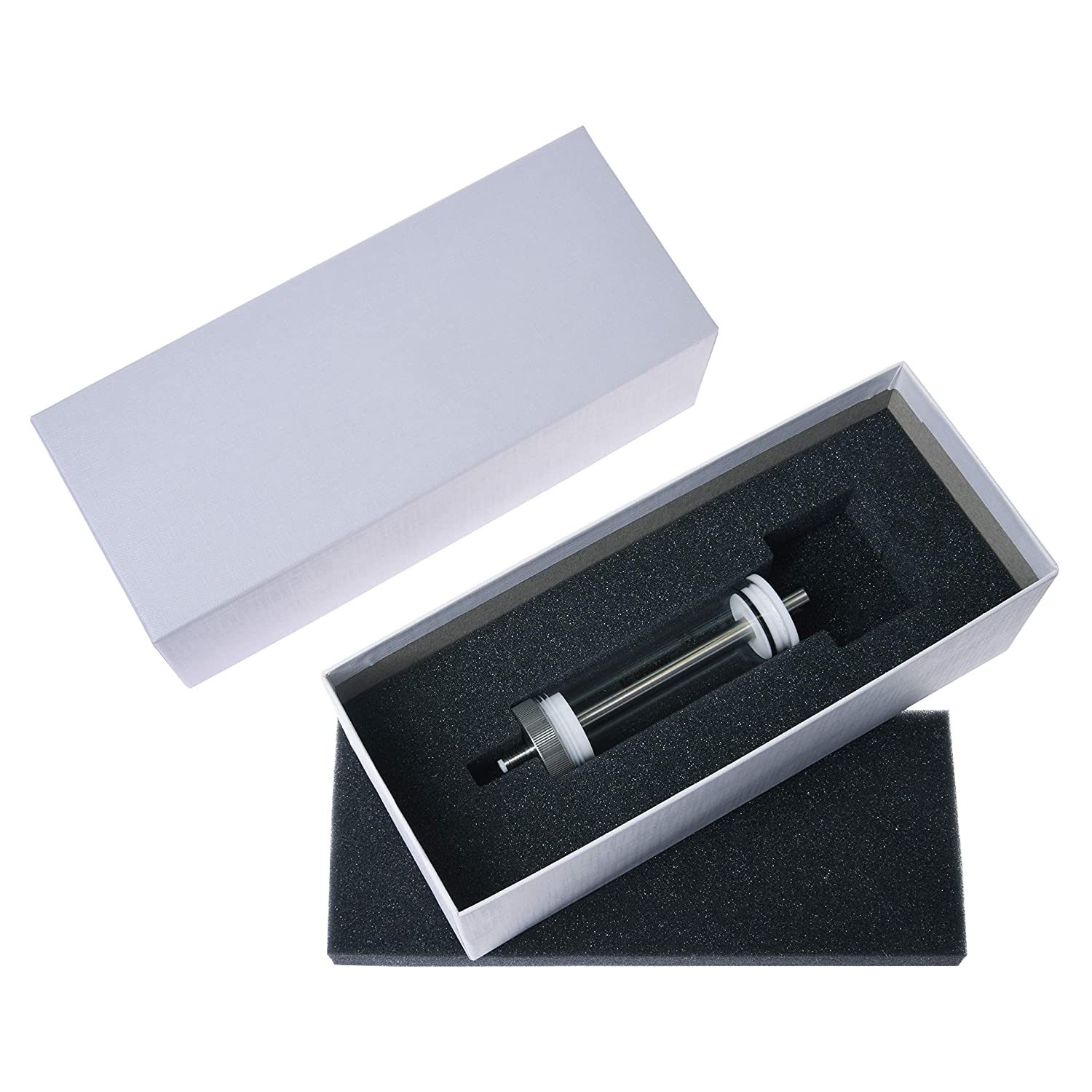 A high chemical resistance makes this syringe a perfect heavy-duty syringes. The syringe is manufactured from high-quality borosilicate glass, that is heat and shock resistant, which ultimately protects against breakage from shock and sudden or extreme fluctuations in temperature. This type of ultra-low expansion glass endows the syringe with maximum chemical resistance, outstanding degree of calibration and superior precision.